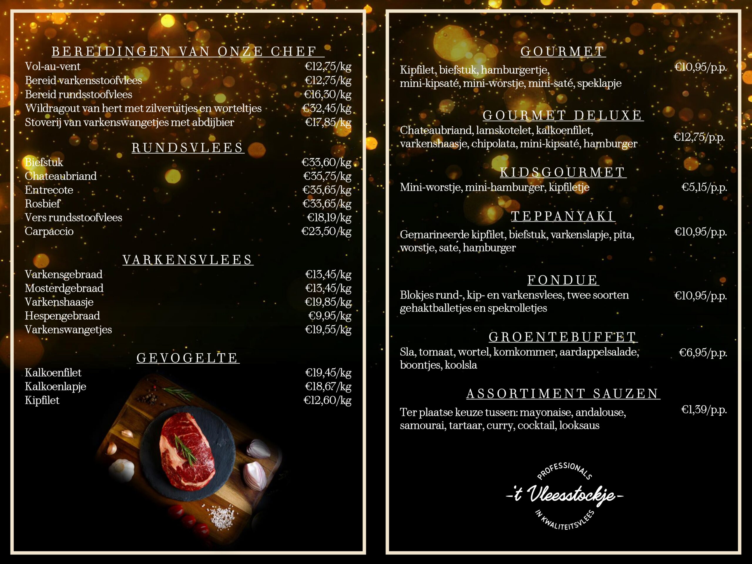 Bestel hier je vlees, bereidingen en bijgerechten voor de feestdagen.